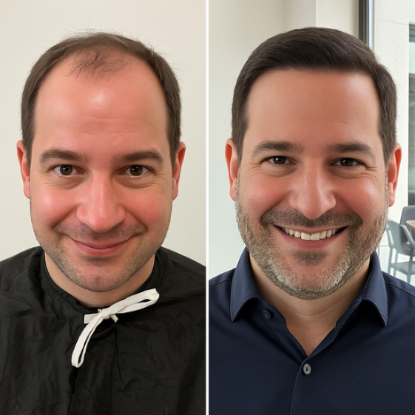 ✨ Before – Noticeable thinning, bald spots, or receding hairlines. ✨ After – Fuller, natural-looking hair with restored density and shape.